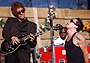 Michael Glabicki, guitarist for the band Rusted Root, is flanked by